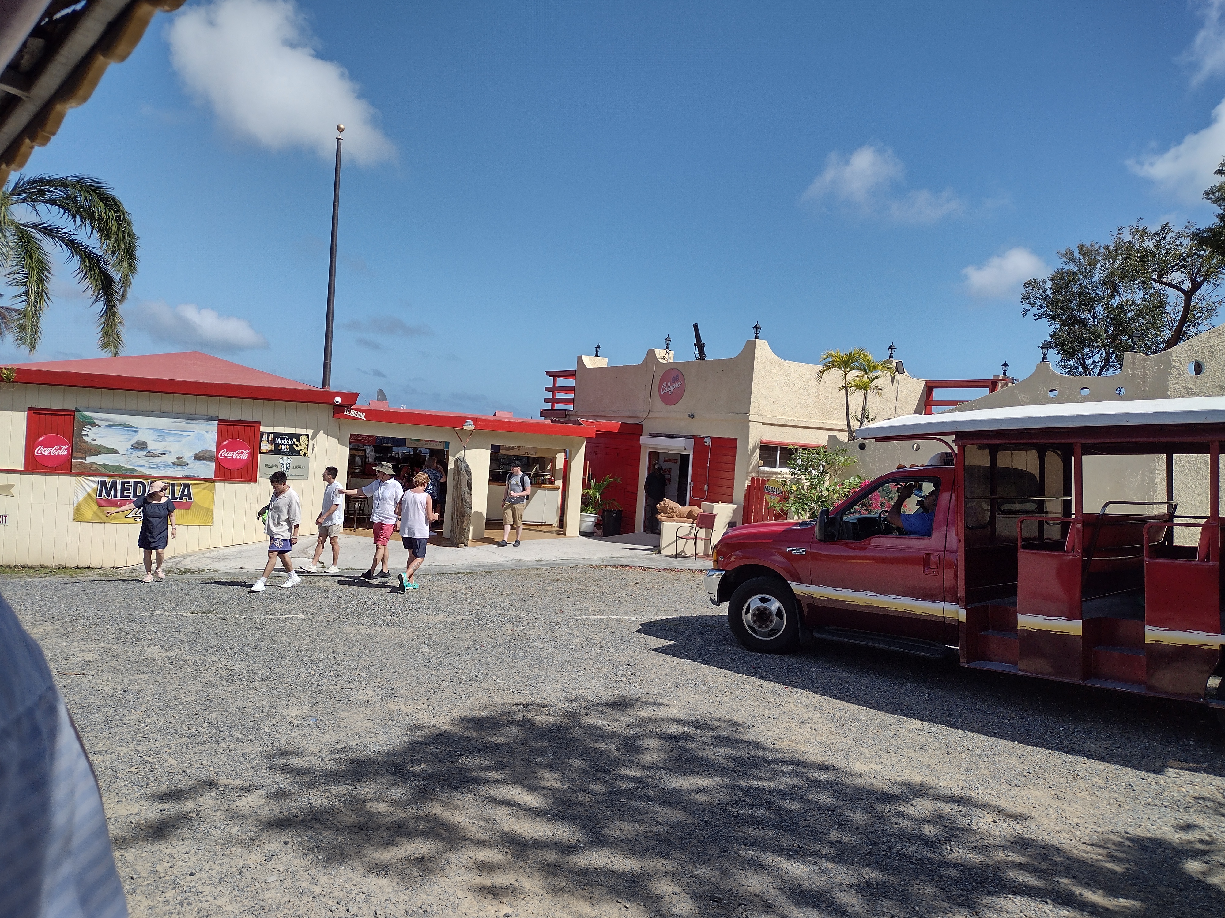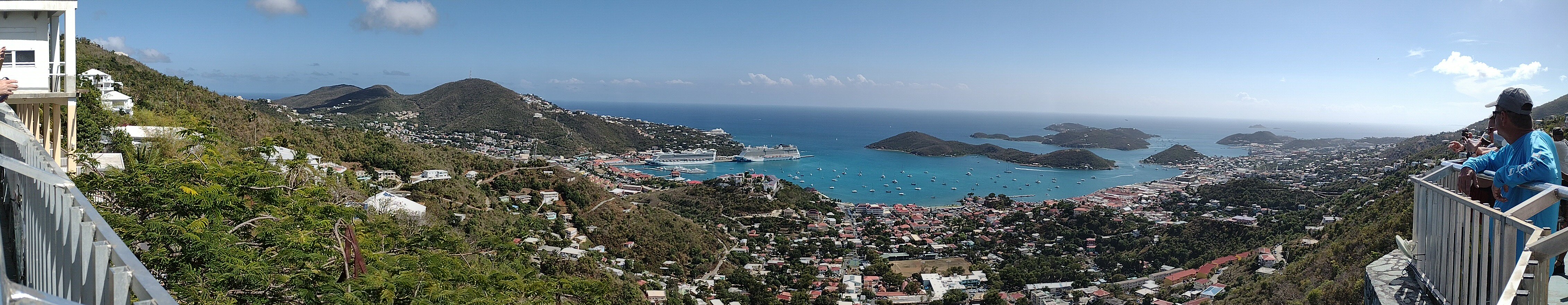 I headed back to the dock for my excursion—an open air jeep that took us to four big viewpoints on the island: Beacon Point (saw 2 big lizards—one was bearded dragon), ? Point, Drake Seat Point (you can see BVI from here), and Mountain Top—the home of the banana daiquiri. Had a nice talk with some of the other people on the excursion—beautiful views.