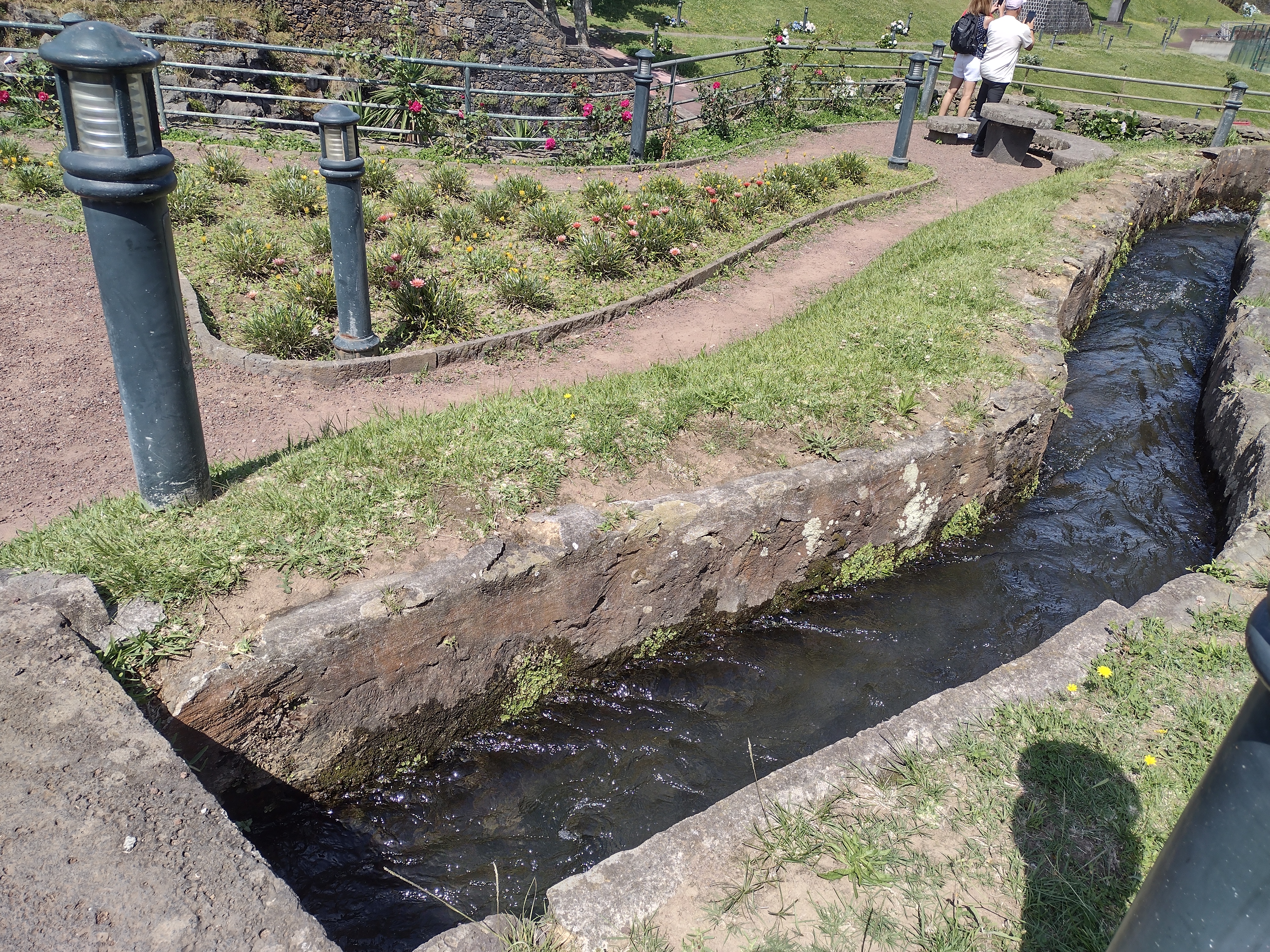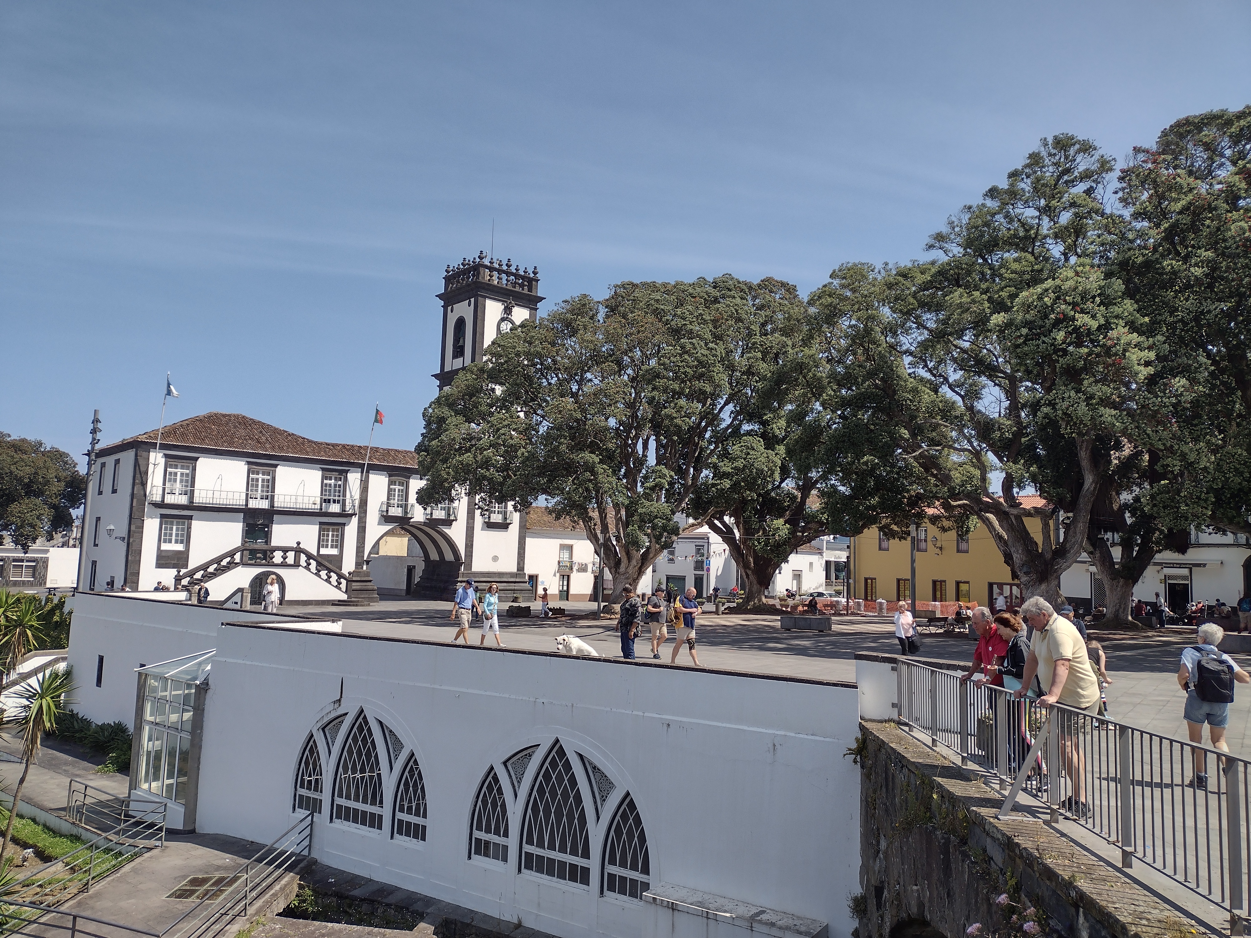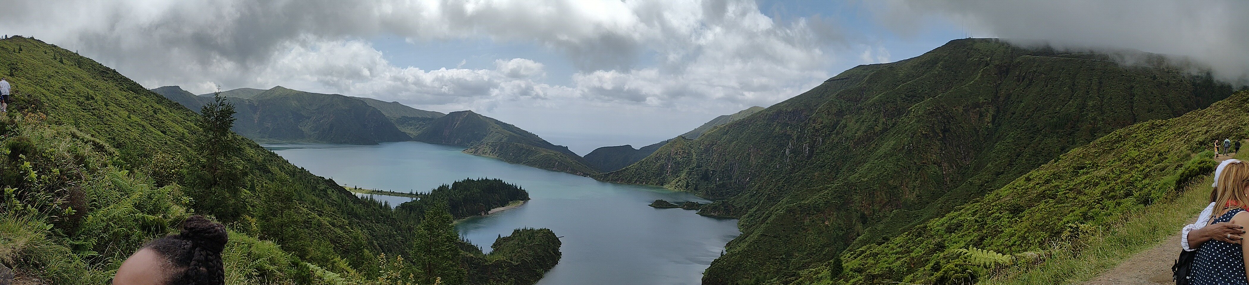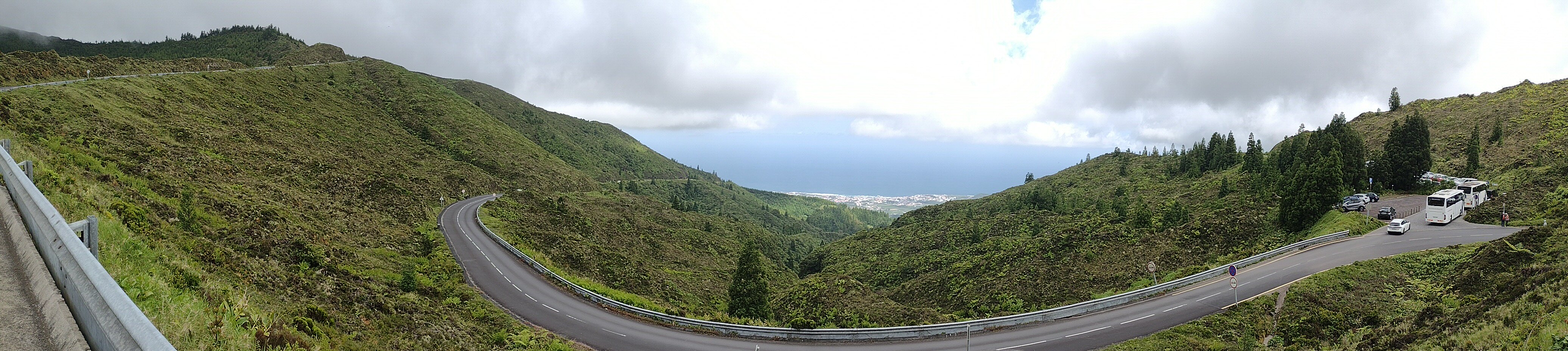 First, the bus headed for Ribeira Grande—a small town in Ponta Delgada. Walked around the square—some beautiful gardens next to it that surrounded the stream they are named after. Hit the ATM to get euros and bought water. Back on the bus, we headed to the top of a mountain to get to a good viewpoint with amazing views of Fire Lake. The whole island is the result of volcanic eruptions (as are the other 8 islands in the Azores archipelago), and San Miguel is the largest.